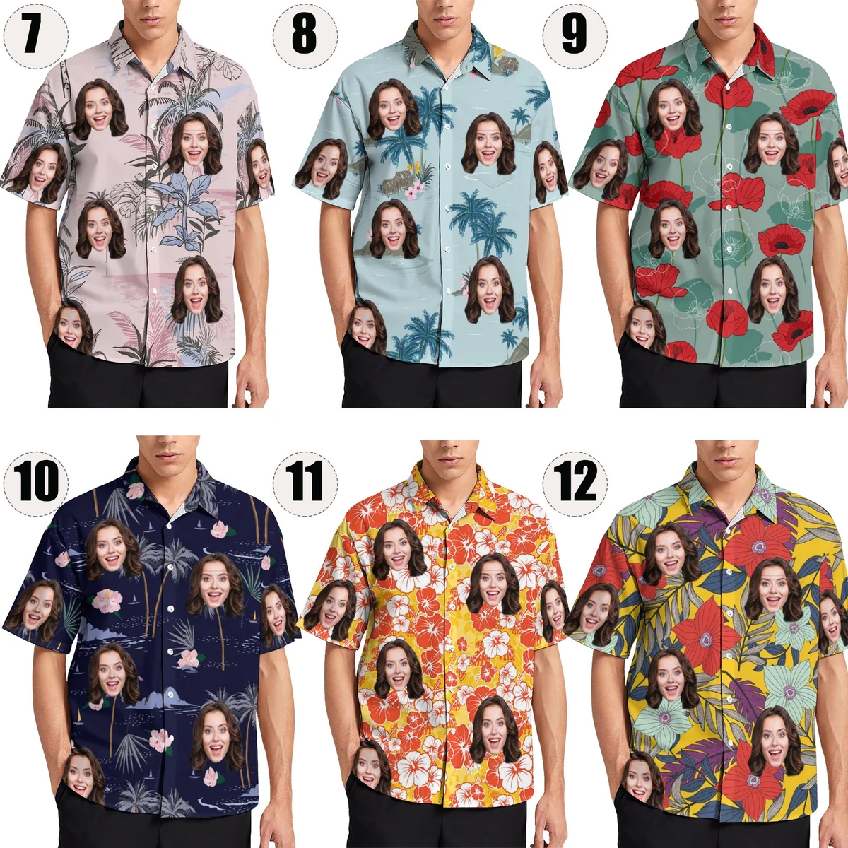 - Easy Customization – Just Upload & Create!: Click “Customize Now”, upload your image, and create a custom Hawaiian shirt with face picture for men personalized, a t-shirt with faces on them custom, or a customized shirt featuring your loved ones. Perfect for boyfriends, girlfriends, husbands, wives, best friends, or even matching family outfits. Available in sizes S to 5XL, making it suitable for a variety of fits.