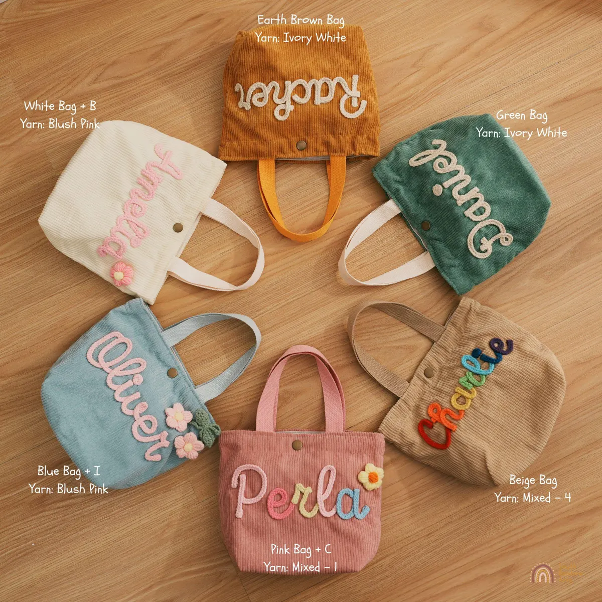 Crochet Flowers will be placed on the TOP RIGHT corner of the bag, after the name. Stiched Yarn Icon (e.g. Rainbow, Star, Heart) & Animal Embellishments (e.g. Fox, Panda, Bunny, Lion) will be placed after the name. If there is not enough space, I will put it right underneath the name. Make every day extra […]