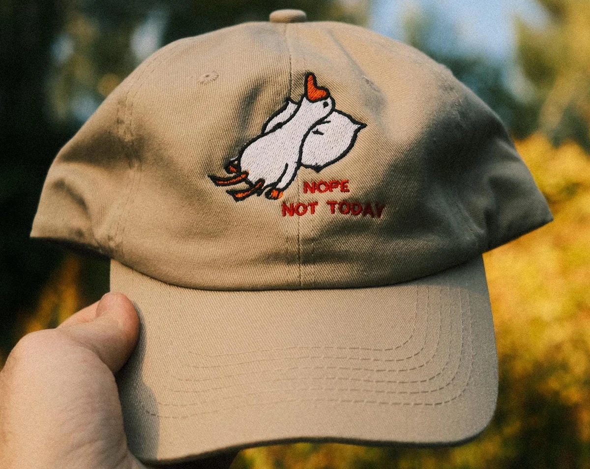 -Hat is unstructured baseball cap. -Brass buckle closure -Adjustable strap -Design is embroidered -One size fits most Design is embroidered.