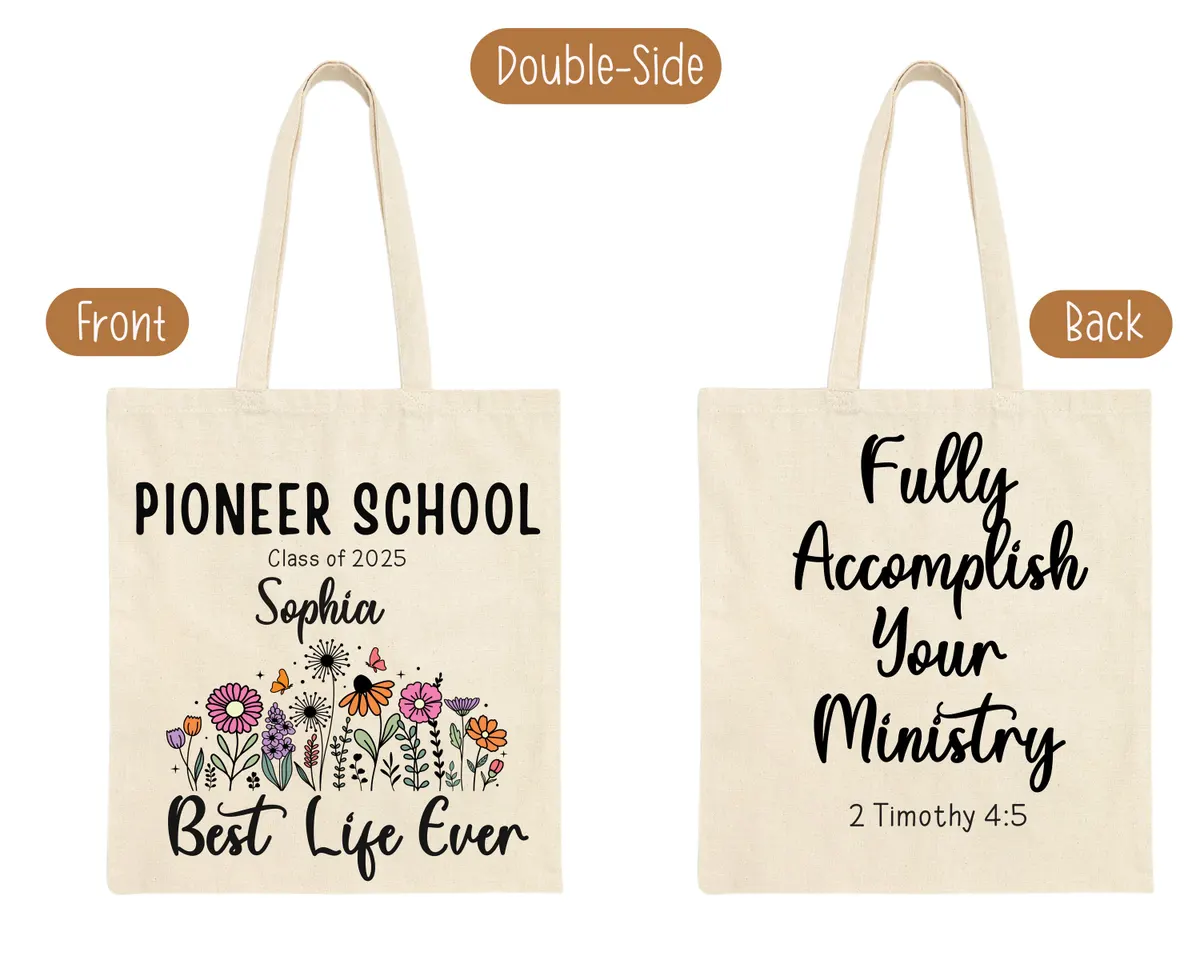 Perfect as a 2026 Pioneer School graduation gift, this bag can be customized with any name or year, making it a thoughtful and unique present for friends, family, or fellow pioneers. Whether used for books, ministry supplies, or daily errands, this tote combines practicality with heartfelt sentiment.